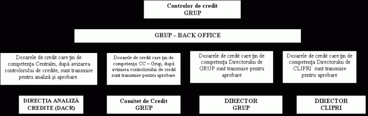 In functie de angajamentul propus prin dosarul de credit (expunere pe grup de clienti), decizia de creditare se ia la urmatoarele niveluri (limite de competenta):