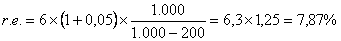 De exemplu, avand urmatoarele date: I = 1.000, C.C. = 200, r.p = 6%, k.r. = 5%, rata efectiva va fi: