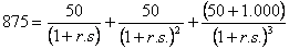 Reformuland problema, trebuie gasita valoarea lui r.s., cand se cunosc V.N.O., P.O.P. , D, si n, D reprezentand valoarea absoluta a unei rate nominale , r.n., a dobanzii, adica, in exemplul de mai sus,