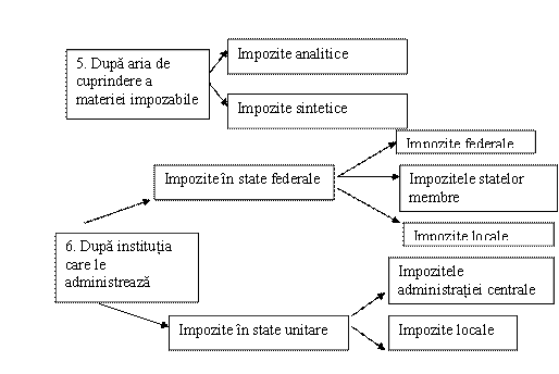 - in statele de tip federal intalnim impozite federale, impozite ale statelor (provinciilor) membre ale federatiei si impozitele locale;