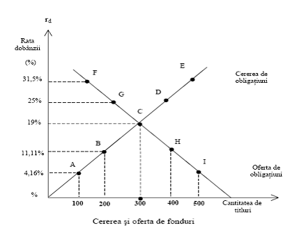 Cererea si oferta de titluri pe termen lung, de tipul obligatiunilor poate fi reprezentata potrivit figurii: