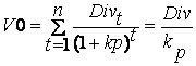unde. Divt - dividendul preconizat pentru a fi distribuit pentru anul t Div 1= Div2 = = Divn - constant kp - costul capitalului pentru actiunile preferentiale |