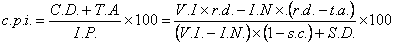 Costul creditului depinde de costul cu dobanda (C.D.) si de taxa de angajare (T.A.), precum si de imprumuturile efectiv primite de catre firma (I.P.), formula de calcul a valorii procentuale a acestuia, cpi, fiind: