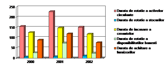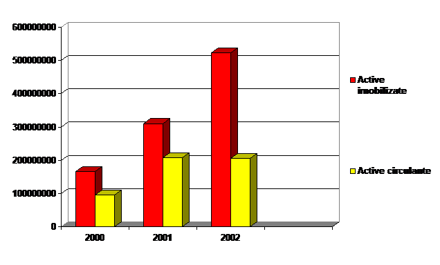 2002 fata de 2001: Stocurile se mentin relativ constate. Rata activelor circulante scade in 2002 fata de 2000 cu 13%, datorita scaderii semnificative a ponderii disponibilitatilor banesti in 2002 fata de 2001 si a scaderii ponderii creantelor in 2002 fata de 2001.