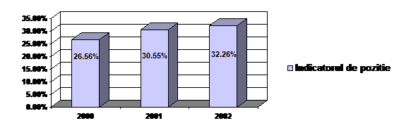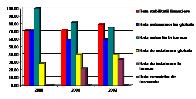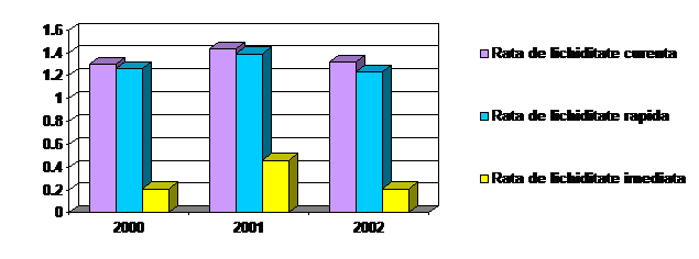 2001 fata de 2000 : Ca urmare a cresterii ponderii disponibilitatilor banesti in anul 2001 fata de 2000 si o mentinere relativ constanta a ponderii stocurilor si a creantelor totale se inregistreaza o usoara crestere a ratei activelor circulante in 2001 fata de 2000.