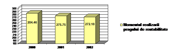 Pragul de rentabilitate de exploatare la nivelul societatii cunoaste o evolutie constanta reflectand mentinerea capacitatii de adaptare a rezultatului exploatarii la conditiile specifice in care societatea isi desfasoara activitatea. Nivelul sau in anul 2002 se incadreaza in zona:"Risc mediu de exploatare".