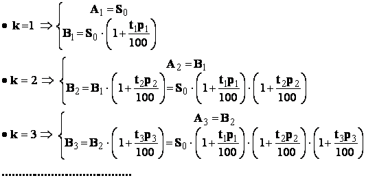 in general : valoarea finala a depozitului,corespunzatoare perioadei tk-1 , este luata drept valoare initiala pentru perioada tk.