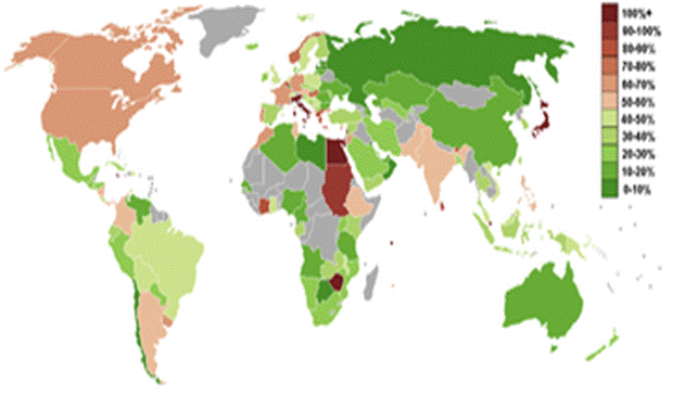 Figura 1, Harta datoriei publice in procente din PIB