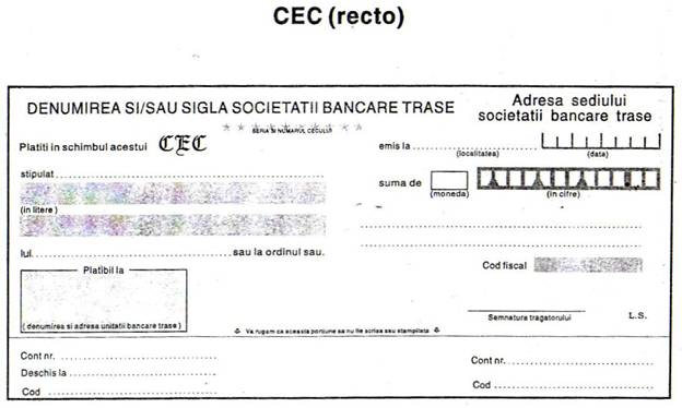 Banca nu accepta la plata decat cecuri pe formulare emise de ea, tipizate, numerotate si avand stampila bancii, care sa cuprinda mentiunile obligatorii si anume: