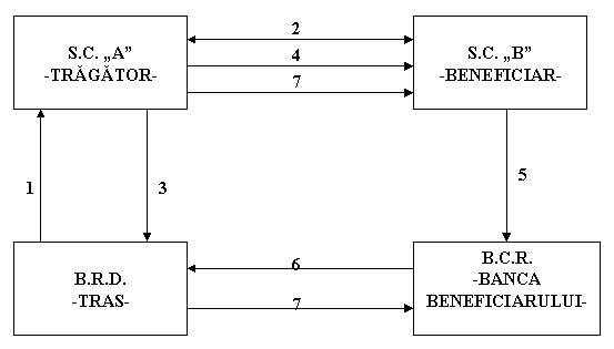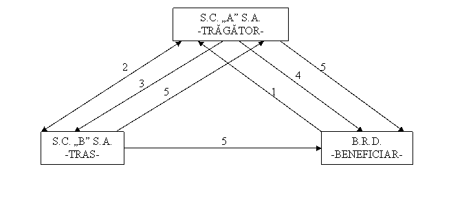 Din acest moment societatea comerciala "A" se afla in postura de tragator, B.R.D. are calitatea de tras si societatea comerciala "B" pe aceea de beneficiar;