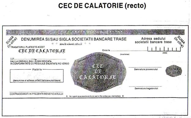Cecul de calatorie este instrumentul de plata prin care tragatorul conditioneaza plata acestuia de identitatea celor doua semnaturi puse pe cec de cumparator. In cazul unui cec de calatorie, succesiunea operatiunilor este urmatoarea: