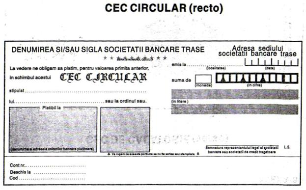 Cecul circular cuprinde urmatoarele mentiuni obligatorii: