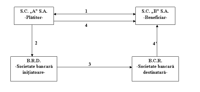 Societatea comerciala "A" are cont curent deschis la B.R.D. iar societatea comerciala "B" la B.C.R.