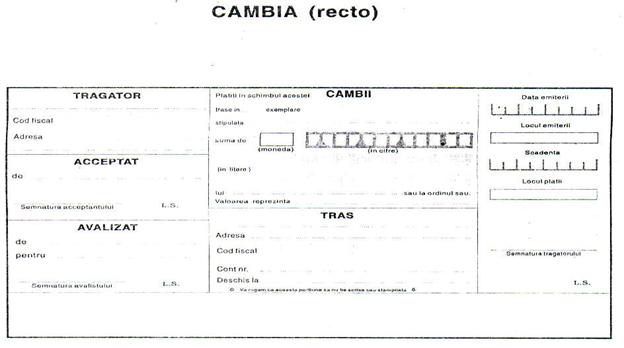 Cambia este un instrument de plata de debit, irevocabil, titlu de credit obiectivizat, platibila la termen, cu un anumit grad de risc al incasarii, instrument compensabil de debit.