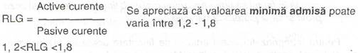 Pe de alta parte, o RLG redusa (apropiata de limita inferioara) nu trebuie privita neaparat ca o caracteristica negativa. Sunt multe companii care abia reusesc sa si acopere nivelul obligatiilor curente cu activele curente. Ele reusesc sa se descurce in asemenea conditii deoarece activele lor circulante sunt foarte lichide si pot fi convertite in numerar imediat ce datoriile devin exigibile (cerute la plata .