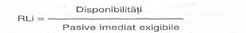In Romania mai e utilizat si un alt indicator de lichiditate, indicator ce se confunda deseori cu 'quick ratio' din sistemul anglo-saxon - Lichiditatea imediata. Diferenta intre Lichiditatea imediata si cea intermediara consta in excluderea creantelor din numaratorul fractiei, astfel ca rata lichiditatii imediate (RLi) se calculeaza dupa formula: