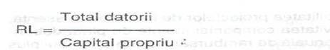 Acest indicator cuantifica marimea finantarii externe in raport cu finantarea asigurata de proprietari si se calculeaza dupa relatia: