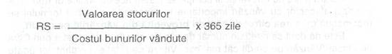 Indicatorul se exprima de asemenea in zile si se calculeaza pe baza relatiei: