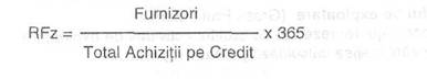 4. Viteza de rotatie a furnizorilor (Credit days ratio) Exprima gradul de dependenta a companiei.de finantarea pe baza cre-ditului-furnizor si se calculeaza astfel: