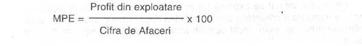 MPE reflecta procentajul reprezentat de profitul activitatii de exploatare din volumul total al vanzarilor si se calculeaza pe baza raportului: