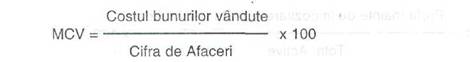 Acest indicator serveste la compararea activitatii companiei cu firmele concurente, costul bunurilor vandute variind foarte mult in functie de produsul realizat. Se calculeaza astfel: