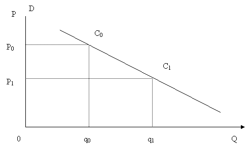 Surplusul consumatorului este definit, din punct de vedere graphic de suprafata data de modificarea pretului de cumparare de la un nivel superior acceptat initial de cumparator la un nivel inferior ca urmare a scaderii acestuia.
