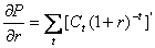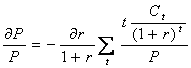 n = numarul de ani pana la maturitatea obligatiunii; n scade cu fiecare an ce trece de la data emisiunii, astfel incat o obligatiune care a avut o perioada de maturitate de 30 de ani in momentul in care a fost emisa (perioada initiala de maturitate = 30 de ani) devine o obligatiune cu o perioada de maturitate de 29 de ani, un an mai tarziu.