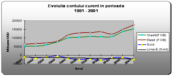 In tabelul urmator, vom prezenta evolutia balantei de plati a Romaniei incepand cu anul 1991 pana in anul 2001: