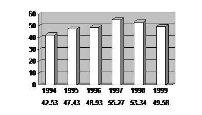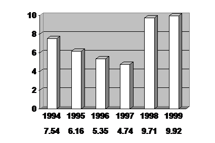 Despre evolutia impozitului pe profit in perioada 1994 - 1999 =i a ponderii acestuia in PIB