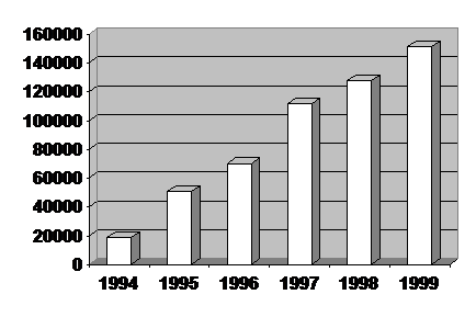 Grafic, ponderea taxei pe valoarea adaugata in PIB in creste de la 3.125 miliarde lei in 1995 la 13.100 miliarde lei in 1999: