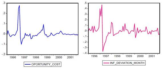 oportunitatea detinerii de active in moneda nationala (calculata ca diferenta intre deprecierea monedei si fructificarea medie oferita de depozitul bancar). In aceste conditii, stabilitatea la un nivel dezirabil al vitezei de circulatie a banilor in sens larg este considerata echivalentul unui vot de incredere acordat de decidentul public politicii monetare.