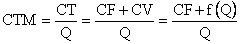 Costul total mediu (CTM) se determina prin raportarea costului total (CT) la volumul productiei (Q), conform relatiei: