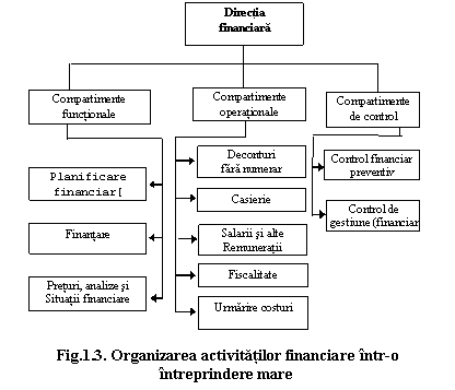 Un mod ipotetic de organizare a activitatilor financiare dintr-o intreprindere mare ar putea fi reprezentat astfel (fig.1.3):