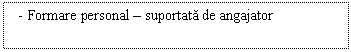 Formarea pesonalului trebuie privita atat ca o cheltuiala, ca o investitie de mentinere, atunci cand este vorba de a fi la curent cu ceea ce e cotidian/curent, cat si ca o investitie de crestere, atunci cand este vorba de imbogatirea cunostintelor.