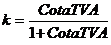 unde P reprezinta valoarea totala a facturii, TVA este taxa pe valoarea adaugata cuprinsa in valoarea totala a facturii iar k este un coeficient obtinut prin raportarea cotei TVA valabila in ziua de calcul, la suma dintre cota TVA si unitate.