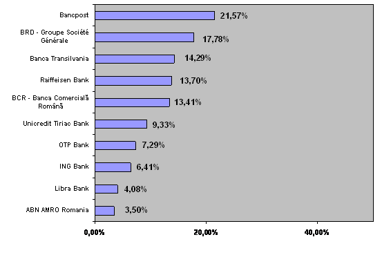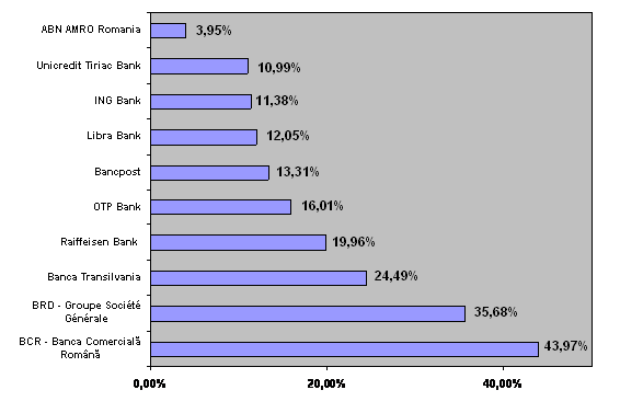 Potrivit rezultatelor anchetei, factorii de decizie din IMM-uri considera ca bancile care ofera cele mai bune servicii sunt (figura 6.2): BANCA COMERCIALA ROMANA (indicata in 43,97% din companii), BRD-GROUPE SOCIT GNRALE (35,68%), BANCA TRANSILVANIA (24,49%), RAIFFEISEN BANK (19,96%), OTP BANK (16,01%), BANCPOST (13,31%), LIBRA BANK (12,05%), ING BANK (11,38%), UNICREDIT TIRIAC BANK (10,99%), si ABN AMRO ROMANIA (3,95%).