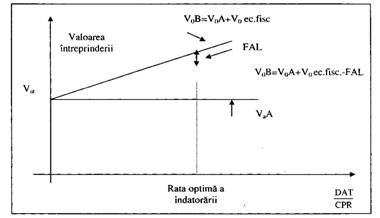 Figura 1. Influenta economiilor fiscale si a riscului de faliment asupra valorii intreprinderii