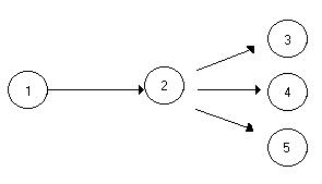b) daca o activitate terminata inainte ca activitate urmeaza sa poata incepe, cele doua activitati vor fi insirate una dupa alta. Evenimentul final al primei activitati este in acelasi timp evenimentul initial al celei de a doua activitate.