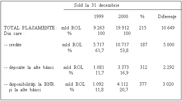 In ceea ce priveste plasamentele ( purtatoare de dobanzi ), evolutia este urmatoarea :