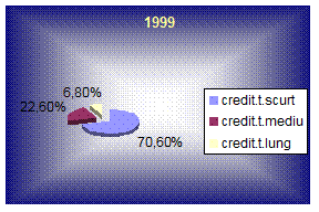 In vederea limitarii riscului in cursul anului 1999 s-au constituit provizioane specifice de risc de credit si dobanda in valoare de 313,4 miliarde lei, care reprezinta 7,4% din total cheltuieli.