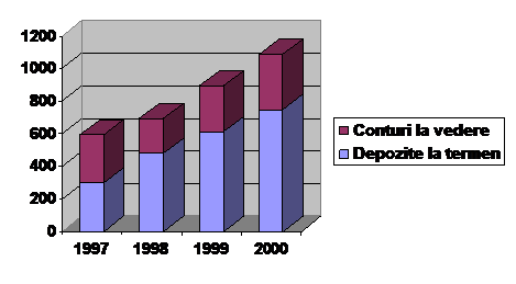 Schimbarile intervenite in structura pasivelor purtatoare de dobanda reflecta actiunile intreprinse de banca pentru asigurarea stabilitatii in timp a acestora, precum si interesul agentilor economici de a-si valorifica mai eficient resursele temporar disponibile, fapt concretizat in cresterea ponderii depozitelor la termen la 62,4%, comparativ cu 43,1% in anul 1999, si reducerea disponibilitatilor la 28,0% fata de 51,6% anul precedent.