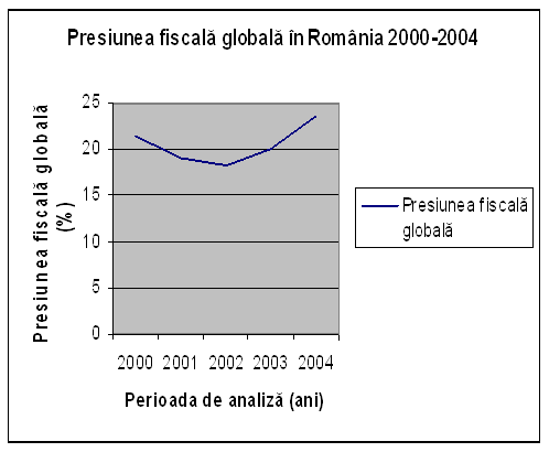 In cea de-a doua parte a intervalului, respectiv 2002-2004 se manifesta tendinta de crestere a presiunii fiscale globale din Romania.