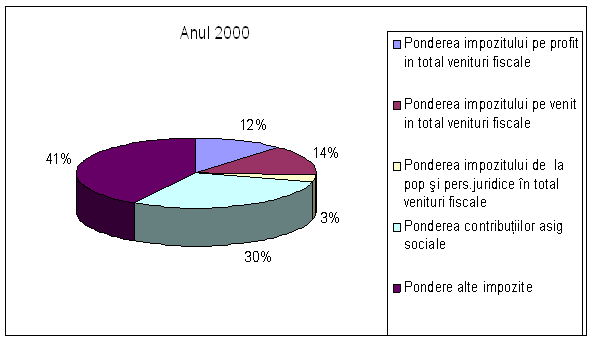 Se observa ca impozitul provenit de la populuatie si persoane juridice are cea mai mica contributie in fiscalitatea directa si a ramas la aceeasi valoare ca si in 2000.