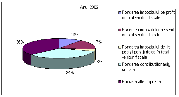 Se observa ca impozitul provenit de la populuatie si persoane juridice are cea mai mica contributie in fiscalitatea directa din Romania anului 2002.