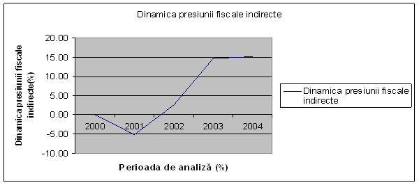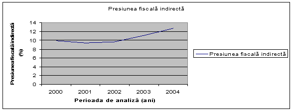Din datele tabelare reiese ca presiunea fiscala indirecta a avut o usoara tendinta de scadere in perioadei analizata 2001-2002 ca apoi sa urmeze un trend crescator pe urmatorii doi ani.