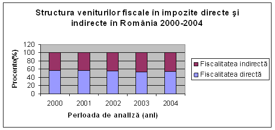 Pe intreaga perioada de analiza 2000-2004, impozitele directe detin cea mai mare pondere din totalul veniturilor fiscale ale bugetului consolidat, acest lucru demonstreaza ca in Romania anilor 2000-2004, fiscalitatea directa capata o mare importanta. Astfel, in 2000 ponderea fiscalitatii directe era de 55,67% iar ponderea fiscalitatii indirecte de 432 % .