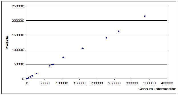 care descrie corect dependenta dintre cele doua variabile, acesta explicand 99,05% din variatia totala a variabilei dependente, adica variatia productiei se datoreaza in proportie de 99,05% valorii adaugate brute.