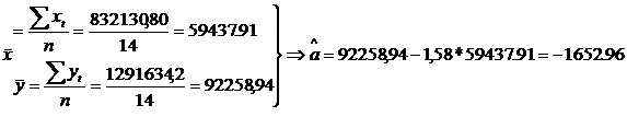 factorului esential x si de valorile estimatorilor parametrilor a si b,