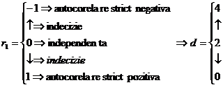 Se poate demonstra ca intre coeficientul de autocorelatie de ordinal 1 si variabila Durbin-Watson exista relatia:
