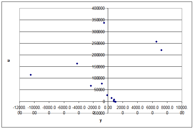 Deoarece graficul punctelor empirice prezinta o distributie oscilanta, se poate accepta ipoteza ca cele doua variabile sunt independente si nu corelate.